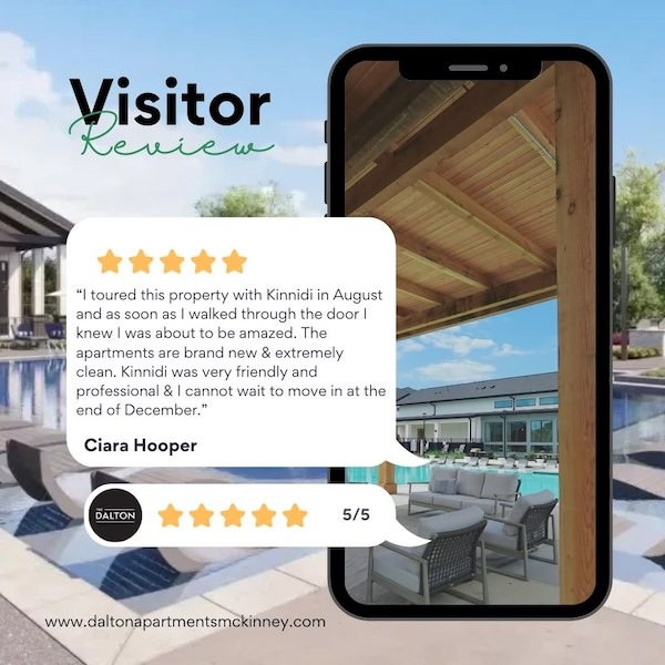 Tucked into a quiet, scenic location with easy access to Downtown, Fairview, Prosper, and more, our McKinney apartments offer a lifestyle that balances suburban calm and city convenience. Elevate your everyday at The Dalton.